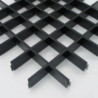 Черный решетчатый потолок Грильято 150х150 из алюминия - это не только практичное решение для интерьера рабочего пространства офиса но и органичное дополнение любого коммерческого помещения.